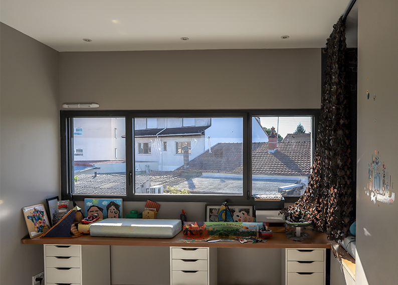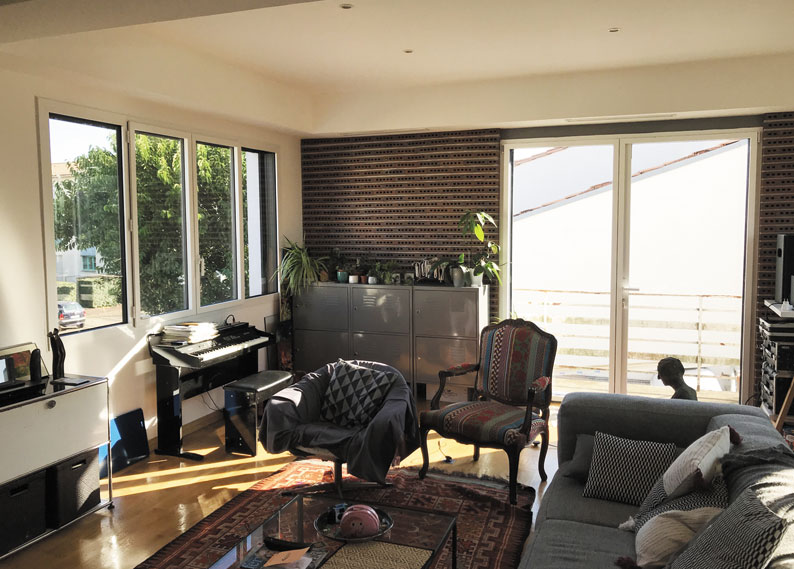 Dans le cadre de la réhabilitation et transformation de bureaux en logement pour l’usage personnel de l’architecte Olivier MARTY de l’agence MARTY ARCHITECTES ET ASSOCIE, 106 rue de XIV Juillet Talence, nous devions répondre aux exigences acoustiques de ce dernier. Olivier voulez profiter pleinement de son logement et de ses convives sans déranger les voisins tout proches. Pour cela, nous avons posé des menuiseries Aluminium de type KLFP de chez K.Line à ouvrants cachés avec vitrage à fort potentiel acoustique (442 Silence/ WE 12 Argon/ TBE 10). Paris réussi les menuiseries de l’ensemble du logement, remplissent leur rôle et satisfont le maître d’ouvrage au-delà de ses espérances