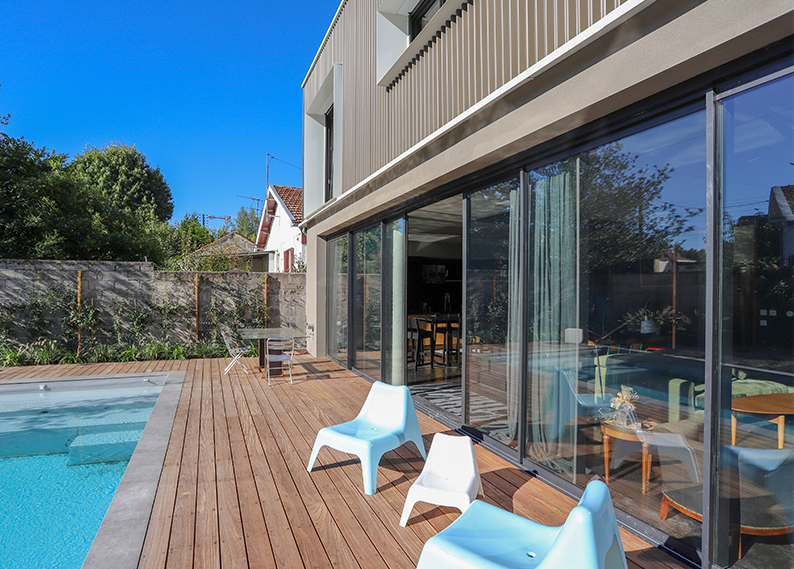Rénovation de baies vitrées, porte vitrée et fenêtre k-line maison Bordeaux.