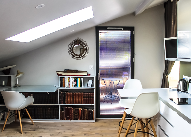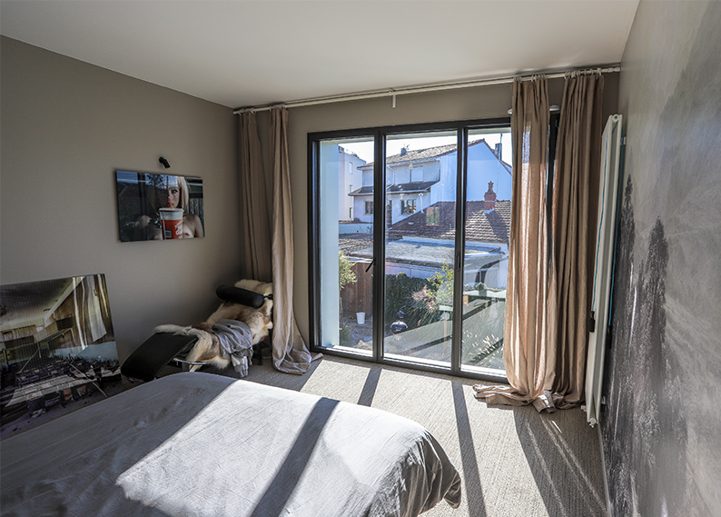 Dans le cadre de la réhabilitation et transformation de bureaux en logement pour l’usage personnel de l’architecte Olivier MARTY de l’agence MARTY ARCHITECTES ET ASSOCIE, 106 rue de XIV Juillet Talence, nous devions répondre aux exigences acoustiques de ce dernier. Olivier voulez profiter pleinement de son logement et de ses convives sans déranger les voisins tout proches. Pour cela, nous avons posé des menuiseries Aluminium de type KLFP de chez K.Line à ouvrants cachés avec vitrage à fort potentiel acoustique (442 Silence/ WE 12 Argon/ TBE 10). Paris réussi les menuiseries de l’ensemble du logement, remplissent leur rôle et satisfont le maître d’ouvrage au-delà de ses espérances